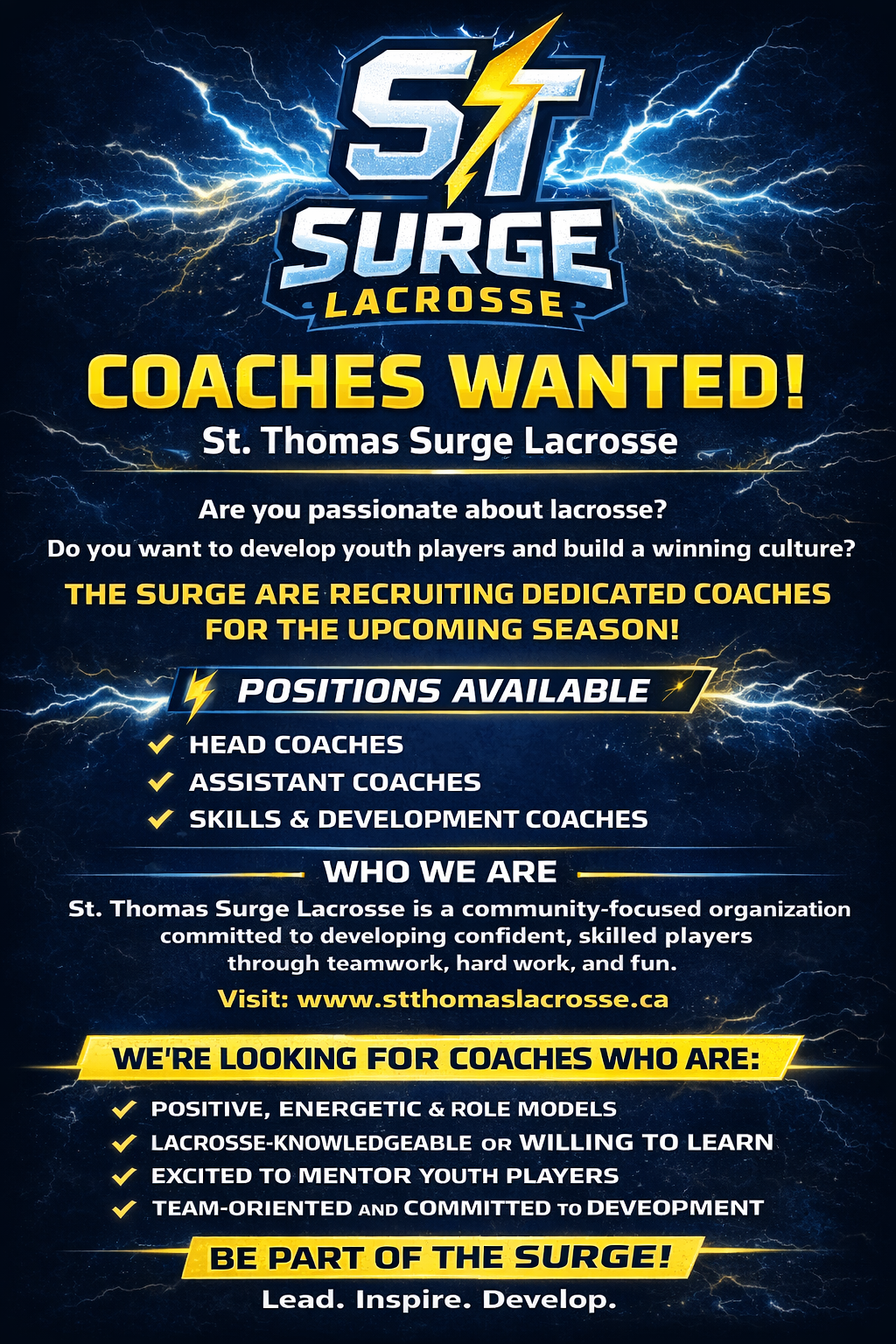 There has never been a better time for your family to dive into the “fastest game on two feet” right here in St. Thomas, Ontario. Lacrosse is more than just a sport — it is a powerful way for children to build confidence, agility, and lifelong friendships. By joining the St. Thomas Surge, your child becomes part of an exciting new chapter for lacrosse in our community, where teamwork, physical fitness, and sportsmanship come together in a high-energy and rewarding environment.